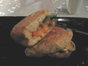 有生菜,蕃茄,素火腿,醬料有點辣,