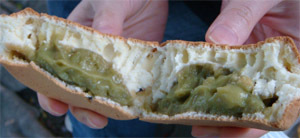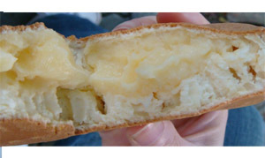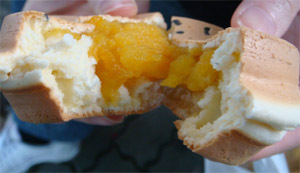 它的餅皮吃起來厚厚綿綿的像蛋糕,