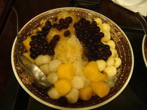 甜甜的配著不甜的仙草冰沙和凍一起吃,真的很好吃!!