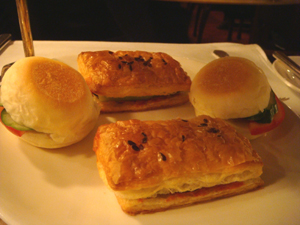 在三層架上場前有很迷你版的麵包湯和涼麵,