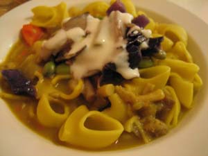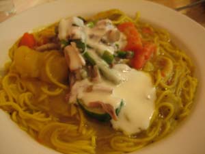 咖哩天使麵,因為前面吃太慢吃到主餐時已經涼掉了,有點可惜說,